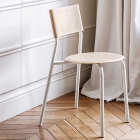 La particularité de cette chaise, outre son design élégant et épuré ainsi que le potentiel de personnalisation offert (couleurs du piétement et essences de bois), est de s'assembler quasi sans outils grâce à la vis moletée…